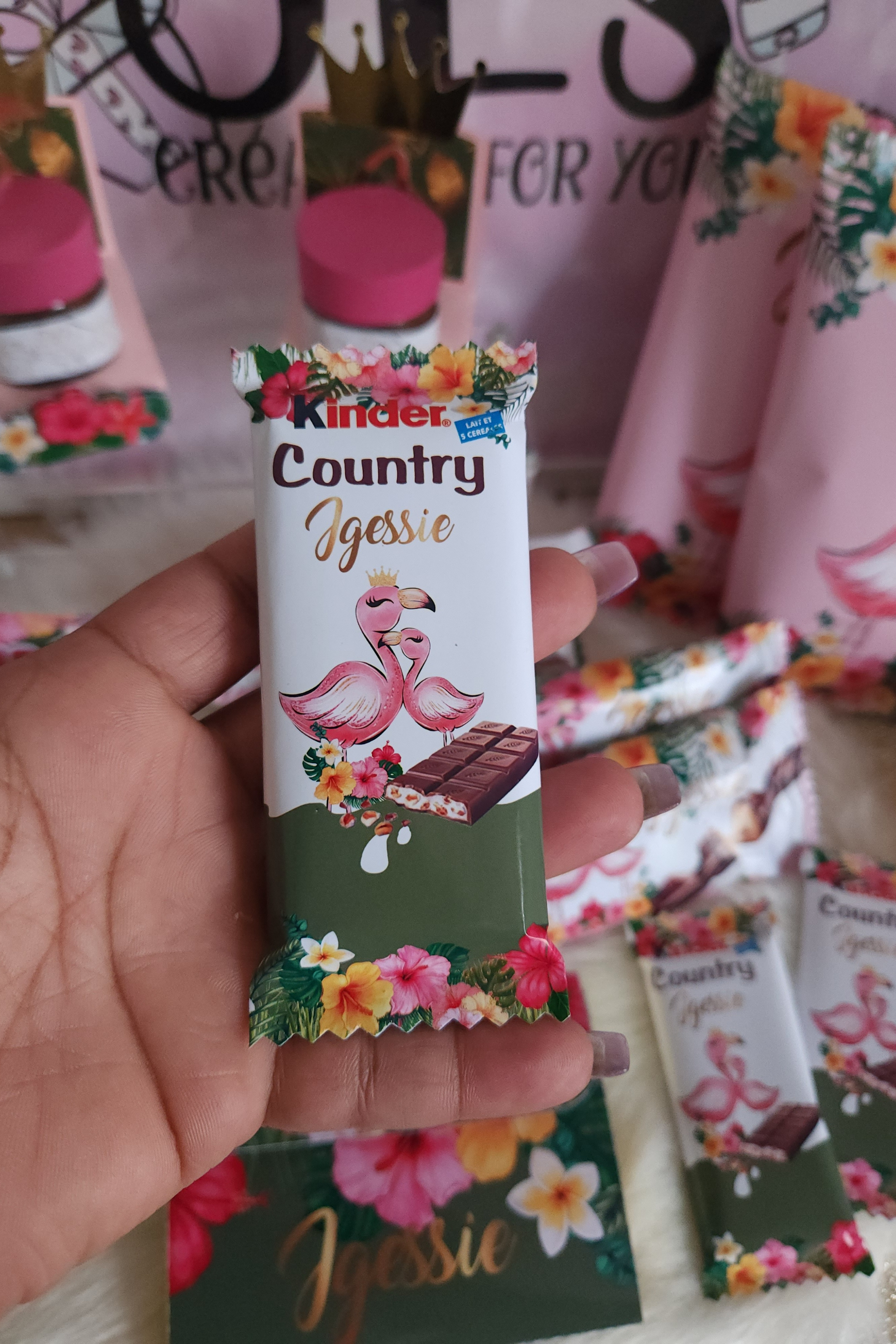 Ajoutez une touche d’originalité à vos petites attentions avec cette barre Kinder Country habillée d’un emballage personnalisé et brillant.