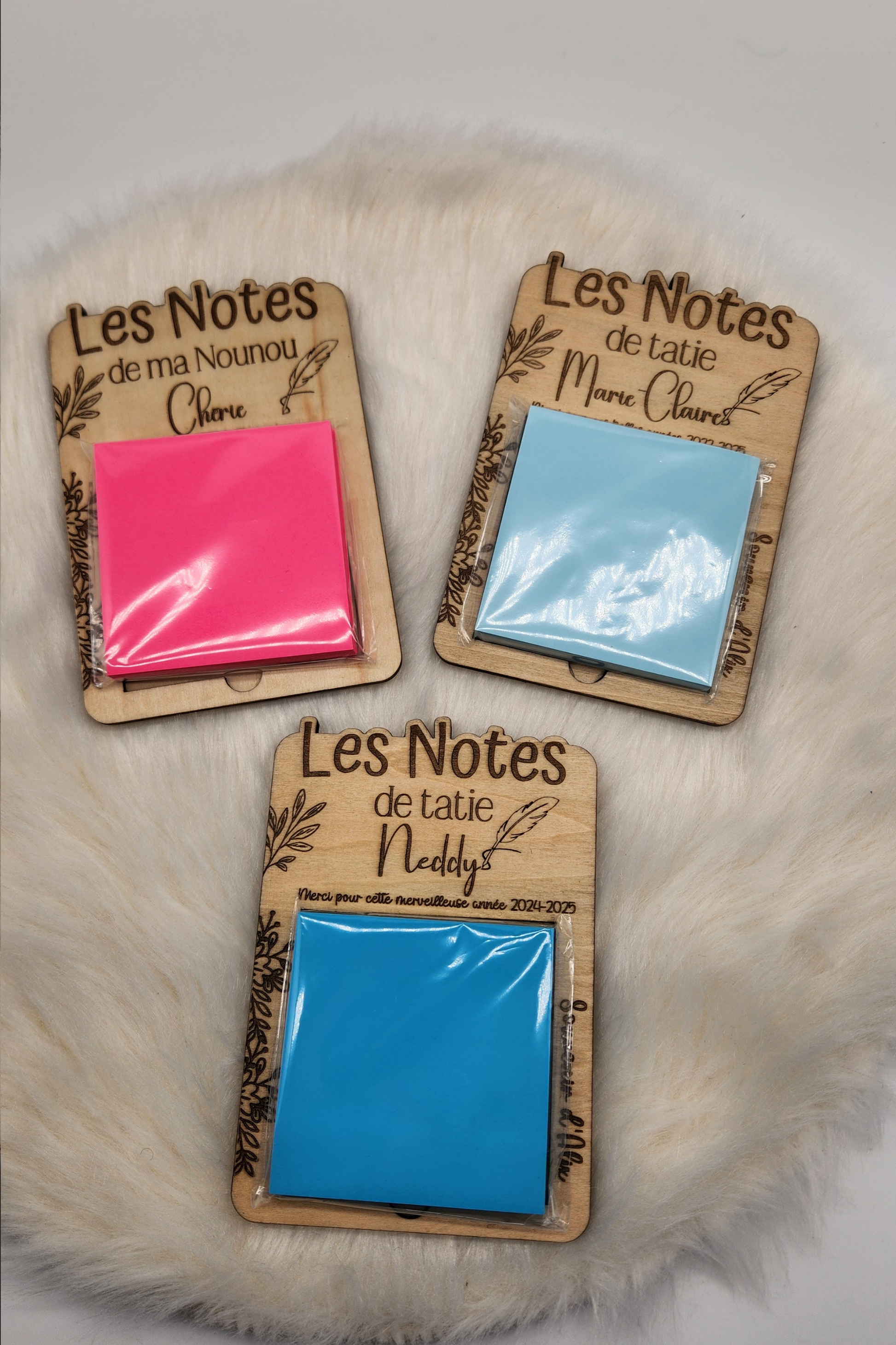 Ce porte post-it en bois est une idée cadeau idéale pour un(e) collègue, un(e) ami(e), une Maîtresse, Nounou, ATSEM, AVS ou même pour une retraite.