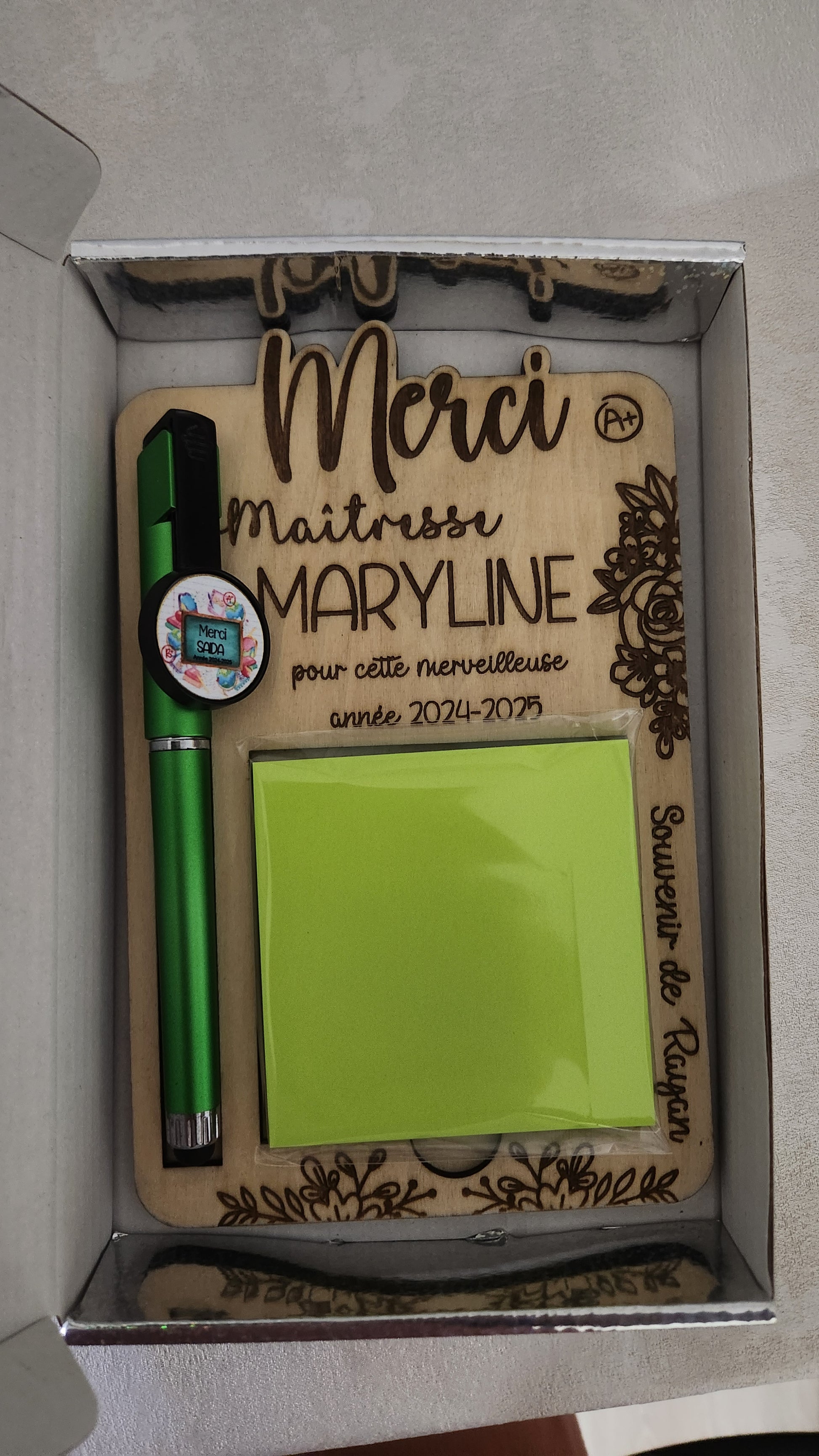 ✏️ Porte post-it personnalisé en bois avec stylo – Le cadeau utile et attentionné